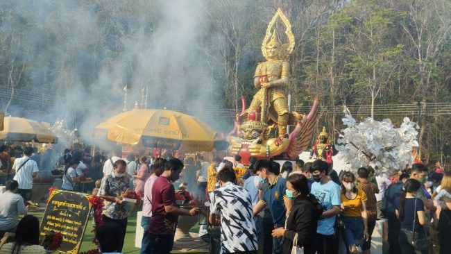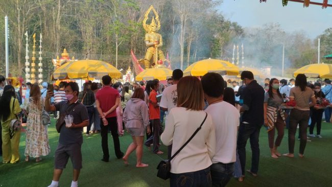 เมื่อเวลา08.30น.(19กุมภาพันธ์ 2566 ) ที่ริมอุโบสถวัดเขาช่องลม ตำบลเขาคันทรง อำเภอศรีราชา จังหวัดชลบุรี ซึ่งเป็นวันอาทิตย์ ได้มีประชาชนทยอยเดินทางมากันอย่างต่อเนื่อง เพื่อมากราบไหว้ “ท้าวเวสสุวรรณทรงราหู”(ท่านทองล้น) องค์ที่ใหญ่ที่ตั้งตะหง่านอยู่ที่หน้าเขาช่องลม พร้อมนำเครื่องเซ่นสังเวย ดอกกุหลาบแดง น้ำแดง ผ้าแดง ประทัด มาบูชา พร้อมจุดธูปเสี่ยงทายในกระถางที่ตั้งไว้ด้านหน้าองค์ท้าวเวสสุวรรณทรงราหูกัน เพื่อหาเลขเด็ดกลับไปเป็นแนวทางซื้อสลากกินแบ่งรัฐบาลกัน
