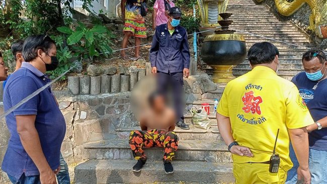 เมื่อเวลา 14.00 น. ของวันที่ 19 กุมภาพันธ์ 2566 ร.ต.อ.ณัฐพงษ์ สุทธิพิพัฒนกุล รองสารวัตรเวรสอบสวน สภ.ศรีราชา อ.ศรีราชา จ.ชลบุรี ได้รับแจ้งว่ามีเหตุถูกทำร้ายร่างกายด้วยอาวุธมีดภายในวัดดัง ต.บางพระ อ.ศรีราชา จ.ชลบุรี จึงรุดตรวจสอบพร้อมกู้ชีพ เพี้ยวเยี้ยงไท้ ศรีราชา