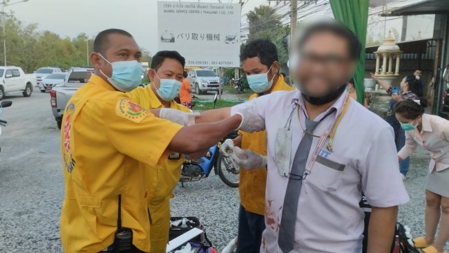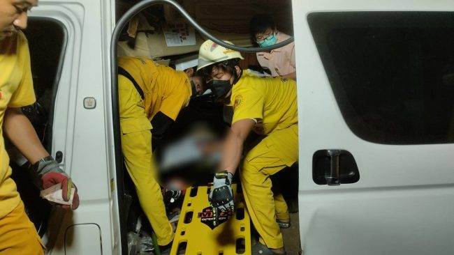 และมีพนักงานโรงงานชายชื่อนายมนูญ เสนาชัย ที่นั่งมาหลังคนขับขาทั้ง 2 ข้าง โดนคอนโซลหลังทับขาไว้ทางอาสากู้ภัยเพียวเยี้ยงไท้ศรีราชาต้องช่วยกันนำเครื่องตัดถ่างมาตัดเบาะรถออกและตัดช่วงคอนโซลหลังคนขับออกเพื่อนำตัวผู้ติดภายในรถตู้ออกมาโดยตัดถ่างนานกว่า 30 นาทีจึงนำตัวออกมาได้ ซึ่งผู้บาดเจ็บทั้งหมดรวม 4 คนถูกนำส่งโรงพยาบาลพญาไทศรีราชาตามสิทธิการรักษา ซึ่งทางตำรวจยังพบว่ามีรถยนต์เก๋งถูกรถพ่วง 18 ล้อ เฉี่ยวชนด้านข้างอีก 1 คันเป็นรถเก๋งยี่ห้อฮอนด้าซีวิคสีบรอน หมายเลขทะเบียน ขอ-7561 ชลบุรี