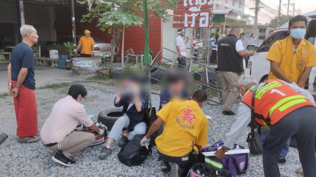เมื่อเวลา18.10น.(21ก.พ.2566)พ.ต.ต.ภคิน นันบุญ สารวัตรเวรสอบสวนสภ.หนองขาม ได้รับแจ้งจากอาสาหน่วยกู้ภัยเพียวเยี้ยงไท้ศรีราชาว่า มีรถพ่วง18ล้อพุ่งชนรถตู้ที่วิ่งสวนทางมามีผู้ได้รับบาดเจ็บ 3 ราย ติดภายในบาดเจ็บสาหัส 1 ราย เหตุเกิดที่ถนนสายหนองค้อ-เขาชี หมู่9 ตำบลหนองขาม อำเภอศรีราชา หลังรับแจ้งจึงประสานให้อาสาหน่วยกู้ภัยเพียวเยี้ยงไท้ศรีราชา นำเครื่องมือตัดถ่างออกมาเพื่อช่วยเหลือผู้ที่ติดอยู่ภายในรถตู้ออกมา