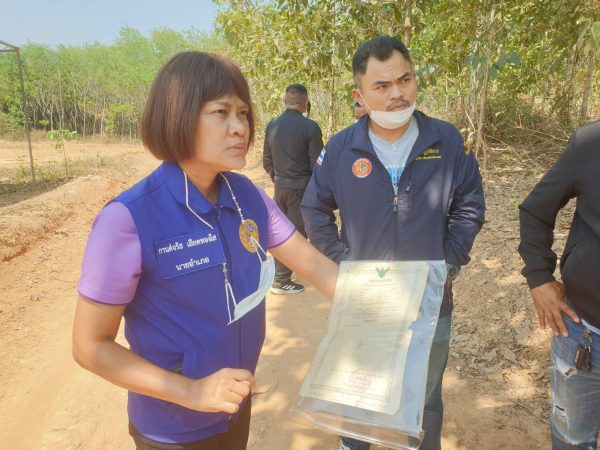 ความคืบหน้าดังกล่าว เมื่อเวลา 13.00 น. วันที่ 21 ก.พ.66 น.ส.กานต์จรัส เอียดทองใส นายอำเภอแกลง จ.ระยอง พร้อมด้วย นายอธิพงษ์ ตันศิริ ปลัดฝ่ายความมั่นคงอำเภอแกลง ร.ต.ท.ณัฐพลวัฒน์ ศรีวิชา รักษาการหัวหน้าชุดปฎิบัติการพิเศษฝ่ายปกครองจังหวัดระยอง นายจักรกฤษณ์ แสงกุหลาบ หัวหน้าหน่วยป้องกันรักษาป่าที่ ร.ย.1 นายขุนพล พานทอง กำนันตำบลพังราด สมาชิกกองร้อยอส.อำเภอแกลง และจนท.ป่าไม้ เข้าตรวจสอบที่ดินที่มีการร้องเรียนรุกเขาสำรองซึ่งเป็นเขตป่าสงวน บ้านนา-ทุ่งควายกิน ประกาศไว้เมื่อ พ.ศ.2484