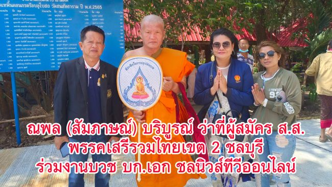 #สุรินทร์ ณพล (สัมภาษณ์) บริบูรณ์ ว่าที่ผู้สมัคร ส.ส.พรรคเสรีรวมไทยเขต 2 ชลบุรี นภชนก เหมือนนามอญ บก.ชลนิวส์ทีวีออนไลน์ ร่วมงานอุปสมบทผู้สื่อข่าวในสังกัด