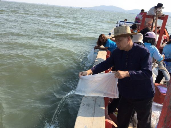 โดยได้รับเกียรติจาก นายสุติกรณ์ จำเริญพานิช นายกเทศมนตรีเมืองชลบุรี กล่าวต้อนรับผู้เข้าร่วมกิจกรรม และ ผศ.ดร.ประสาร อินทเจริญ หัวหน้าภาควิชาวาริชศาสตร์ คณะวิทยาศาสตร์ มหาวิทยาลัยบูรพา เป็นประธานกล่าวเปิดโครงการ และเป็นผู้แทนมอบงบประมาณสนับสนุนแก่คุณยงยุทธ วิวัฒนะ ประธานธนาคารปูม้าชุมชนศรีนิคม-ท่าเรือพลี จังหวัดชลบุรี จำนวน 5,000 บาท เพื่อปรับปรุงโรงเรือนและติดตั้งระบบโซลาเซลล์ (Solar cell) เพื่อการประหยัดพลังงาน จากนั้น ผู้เข้าร่วมกิจกรรมร่วมกันปล่อยลูกพันธ์ุปูม้า จำนวน 160 ถุง สู่ทะเล