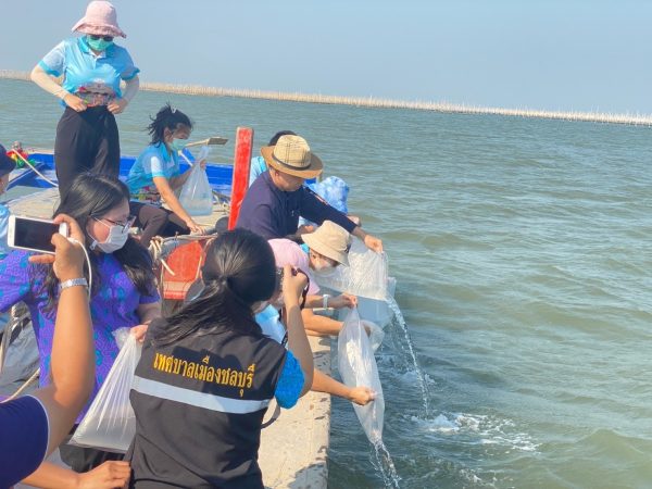 เมื่อวันที่ 28 กุมภาพันธ์ 2566 เวลา 08.30 น. คณะวิทยาศาสตร์ มหาวิทยาลัยบูรพา นำทีมโดย ผศ.ดร. จริยาวดี สุริยพันธุ์ อาจารย์ประจำภาควิชาวาริชศาสตร์ คณะวิทยาศาสตร์ ร่วมด้วยทีมนักวิจัยจากโครงการ ร่วมกับเทศบาลเมืองชลบุรี จัดกิจกรรม “ปล่อยลูกพันธุ์ปูม้าเพื่อการอนุรักษ์” ณ ธนาคารปูม้าชุมชนศรีนิคม-ท่าเรือพลี จังหวัดชลบุรี