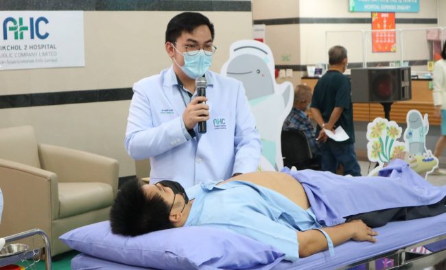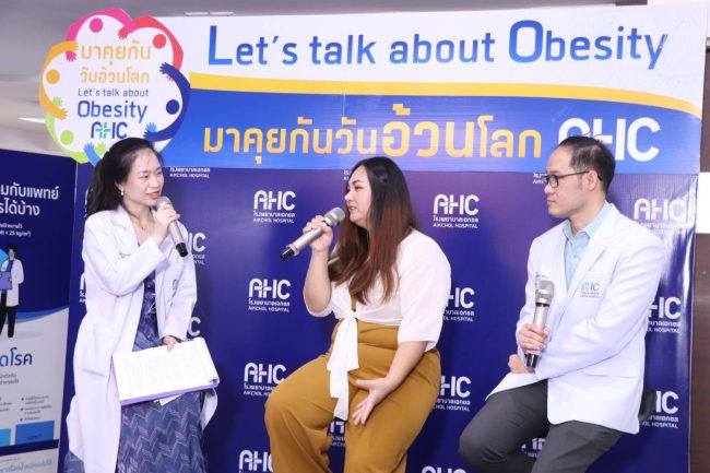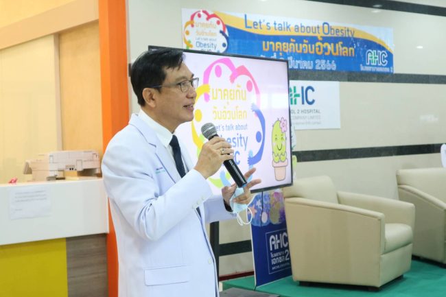 สำหรับทางฝั่งของ โรงพยาบาลเอกชล 2 นำโดยนายแพทย์เกศดา จันทร์สว่าง ผู้อำนวยการฝ่ายการแพทย์ โรงพยาบาลเอกชล 2 กล่าวต้อนรับผู้เข้าร่วมงานพร้อมเปิดโครงการวันอ้วนโลก Let’s Talk About Obesity AHC โดยมีการบรรยายพิเศษให้ความรู้เกี่ยวกับโรคอ้วนและวิธีการลดน้ำหนักอย่างถูกวิธี โดย นพ.เมธี โพธิพงศธร แพทย์ประจำแผนกอายุรกรรม และการสาธิต วิธีการฝังเข็มเพื่อลดน้ำหนัก กระชับสัดส่วน และการครอบแก้วเพื่อสุขภาพ โดย พจ.ณัฐจักร์ อัครพงษ์วศิน แพทย์ประจำแผนกแพทย์แผนจีน ภายในงานยังมีการตรวจสุขภาพเบื้องต้น ตรวจน้ำตาลในเลือด (DTX ) การแนะนำแพ็กเกจตรวจสุขภาพ และนวัตกรรมใหม่ ปากกาลดน้ำหนัก โดยมีผู้ที่สนใจเข้าร่วมงานกันอย่างคับคั่ง