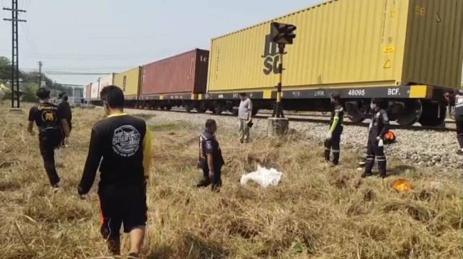 บรรทุกตู้คอนเทนเนอร์ มีผู้ถูกรถไฟชน บริเวณทางรถไฟ ถนน 9กิโล หมู่ 3 ตำบลสุรศักดิ์อำเภอศรีราชา จังหวัดชลบุรี จึงเข้าร่วมตรวจสอบ พร้อมเจ้าหน้าที่กู้ภัยสว่างประทีปธรรมสถานศรีราชา