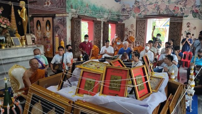 วันนี้ ( 11 มีนาคม 2566) ที่วัดเขาไม้แดง หมู่ 5 ตำบลบางพระ อำเภอศรีราชา จังหวัดชลบุรี พระครูวิสิฐธรรมโสภณ หรือ”หลวงพ่อสง่า ติกขวีโร” เจ้าอาวาสวัดเขาไม้แดง พร้อมศิษยานุศิษย์ ได้จัดพิธีปลุกเสกเหรียญหลวงพ่อ วัดเขาไม้แดง รุ่นแรก พร้อมปลุกเสกโฉนดที่ดิน ให้กับประชาชนที่นำโฉนดที่ดินเกือบ 1,500 คิว ประมาณกว่า 2,000 แปลง มาเข้าร่วมในพิธี โดยพบว่ามีประชาชนทั่วประเทศ ไม่ว่าจะมาไกลจากเหนือสุดหรือใต้สุด เช่น จังหวัดยะลา เชียงใหม่ เชียงราย ต่างเดินทางมาเข้าร่วมพิธีเกือบ 5,000 คน จนแน่นพื้นที่วัด รวมทั้งยังได้รับเกียรติจาก พ.ต.อ.ชาตรี สุขศิริ รอง.ผบก.ฉะเชิงเทรา ช่วยราชการ รอง.ผบก.ชลบุรี นายสมเกียรติ เกตุวัตถา ส.อบจ.ชลบุรี และนายสมชาย เกตุวัตถา นักธุรกิจในพื้นที่ตำบลบางพระ เข้าร่วมในพิธี