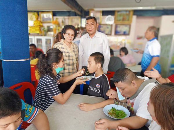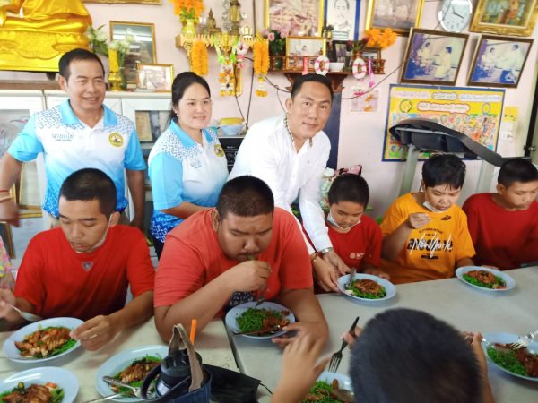 โดยมี นางสาวอารยา แดงแสง ผู้อำนวยการศูนย์ส่งเสริมทักษะบุคคลออทิศติดจังหวัดชลบุรี และคณะบุคลากรให้การต้อนรับ โดยทาง นายไมตรี(นายกฯไข่) ประเสริฐ พร้อมด้วยครอบครัว ได้นำเอาอาหาร หมี่หยกหน้าเป็ดย่าง ข้าวหมูกรอบ ขนมลอดช่อง เครื่องดื่ม มาทำการจัดเลี้ยง และยังได้นำเอาเครื่องอุปโภค บริโภค ข้าวสาร อาหารแห้ง น้ำปลา น้ำมันพืช ปลากระป๋อง มาม่า น้ำดื่ม หัวหอม น้ำตาลทราย ฯลฯ จำนวนมากเอามามอบให้อีกด้วย มี นายภักดี หอมเสียง รองนายกเทศมนตรีตำบลดอนหัวฬ่อ นางสาวสุพิชฌาย์ ปานผดุง รองนายกเทศมนตรีตำบลดอนหัวฬ่อ นายมานพ พันธ์ุวร ประธานสภาเทศบาลตำบลดอนหัวฬ่อ นายตรีทัช ประดิษฐ์วงษ์ รองประธานสภาเทศบาลตำบลดอนหัวฬ่อ ปลัดเทศบาลตำบลดอนหัวฬ่อ