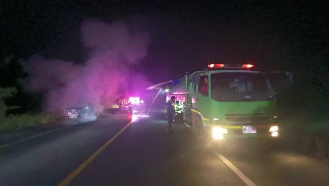 เมื่อเวลา 00.10 น.วันที่ 16 เมษายน 2566 ศูนย์วิทยุหน่วยกู้ภัยสว่างบริบูรณ์ธรรมสถานเมืองพัทยารับแจ้งเหตุ มีเพลิงไหม้รถยนต์ เหตุเกิดบนถนนสายเขาไม่แก้ว นิคมพัฒนา บ้านด่านผจญ หมู่ 4 ตำบลเขาไม้แก้ว อำเภอบางละมุง จังหวัดชลบุรี หลังรับแจ้งจึงประสานกำลังเจ้าหน้าที่กู้ภัยสว่างบริบูรณ์ธรรมสถานเมืองพัทยา เจ้าหน้าที่กู้ภัยสว่างพรกุศลระยองเจ้าหน้าที่ป้องกันและบรรเทาสาธารณภัยองค์การบริหารส่วนตำบลเขาไม้แก้ว รถน้ำซูมระยอง รีบนำกำลังไปตรวจสอบ