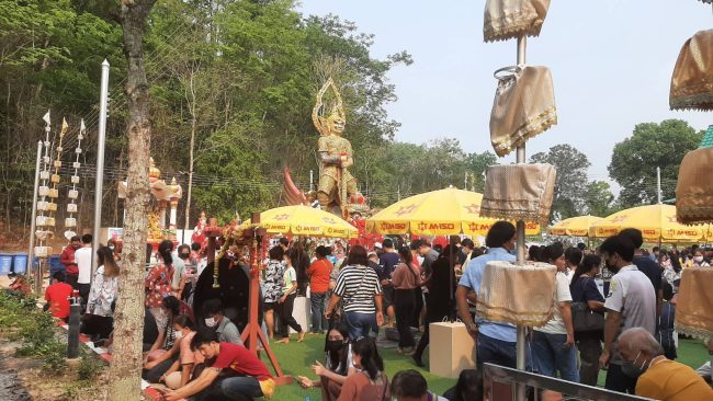 ชลบุรี-ประชาชนยังคงศรัทธาล้นช่วงวันหยุดเทศกาลสงกรานต์แห่ ไหว้พระขอพร “ท้าวเวสสุวรรณ” (ท่านทองล้น) ให้สำเร็จดังหวัง ต้อง “วัดเขาช่องลม” ศรีราชา