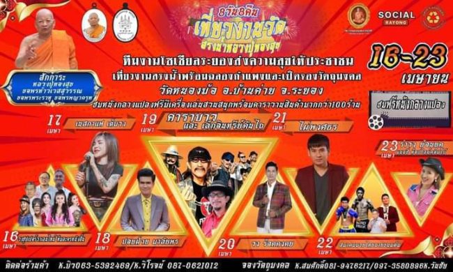 นายนิพนธ์ เสียงจันทร์ กล่าวว่านอกจากจะมีการเปิดให้จองเหรียญวัตถุมงคลดังกล่าวแล้ว ทางวัดหนองฆ้อ ยังได้จัดให้มีการสรงน้ำพระ เนื่องในวันสงกรานต์ และฉลองกำแพงวัดด้วย การจัดงานครั้งนี้ก็เพื่อกระตุ้นเศรษฐกิจช่วยพี่น้องชาวบ้าน ชุมชนในพื้นที่ และประชาชนชาวระยอง หลังจากต้องเจอสถานการณ์โควิดมาหลายปี วันนี้ถือว่าประสบความสำเร็จอย่างยิ่งใหญ่ จึงอยากเชิญชวนผู้ที่อยู่ในพื้นที่ และนักท่องเที่ยวเดินทางมาร่วมงาน จากกรุงเทพฯใช้เวลาเพียงชั่วโมงกว่าๆก็ถึงวัดหนองฆ้อแล้ว ที่นี่มีทั้งงานบุญ ความสนุกสนานรื่นเริง มาไหว้ขอพรหลวงปู่ทองสุข ขอพรบารมีท้าวเวสสุวรรณ พยาครุฑ พระราหู พระสีวลี และสิ่งศักดิ์สิทธิ์ภายในวัดอีกมากมาย ซึ่งงานจัดขึ้นระหว่างวันที่ 16-23 เม.ย.นี้