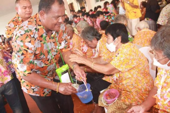 ชลบุรี-อบต.เขาไม้แก้วจัดกิตกรรมสรงน้ำพระและรดน้ำดำหัวผู้สูงอายุ ณ วัดเขาไม้แก้ว
