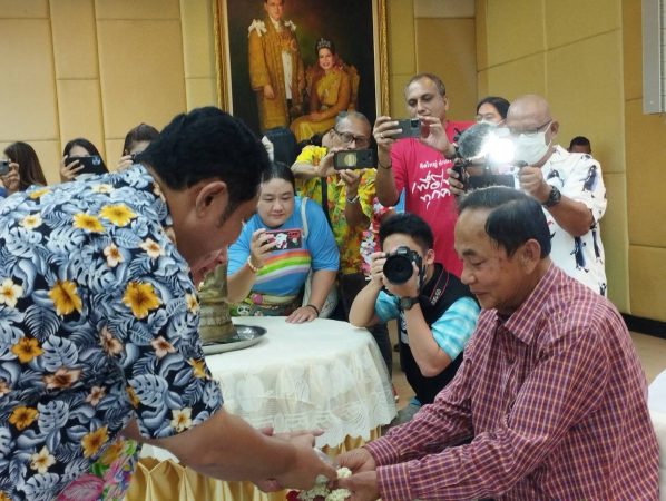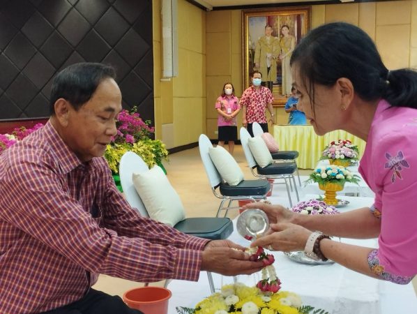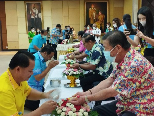 เทศบาลนครแหลมฉบัง จัดพิธีรดน้ำดำหัว ผู้บริหาร เพื่อแสดงความเคารพรัก นับถือห่วงใย และสืบสานประเพณีสงกรานต์หรือวันปีใหม่ของไทย