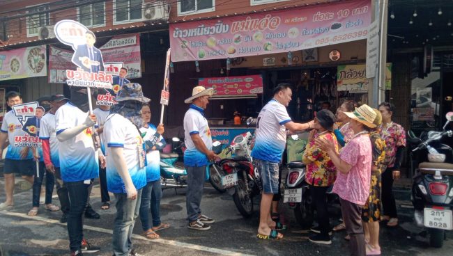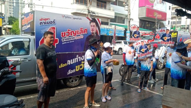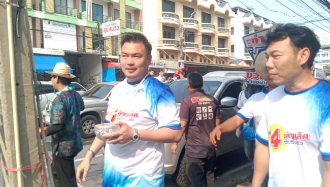 การเมืองอนุรักษ์ประเพณีไทย งานวันไหลศรีราชา “ขวัญเลิศ พานิชมาท ผู้สมัครเบอร์ 4 ” เดินเคาะประตูบ้าน รดน้ำขอพรผู้ใหญ่ ขอความรักความเมตตา เข้าคูหา กาเบอร์ 4 นะจ๊ะ