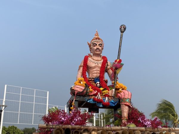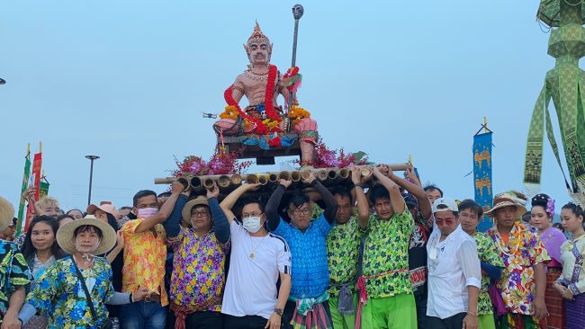ชลบุรี ชาวบ้านและนักท่องเที่ยว ร่วมพิธีบวงสรวงสักการะองค์พญายมก่อนนำไปลอยสู่ทะเล