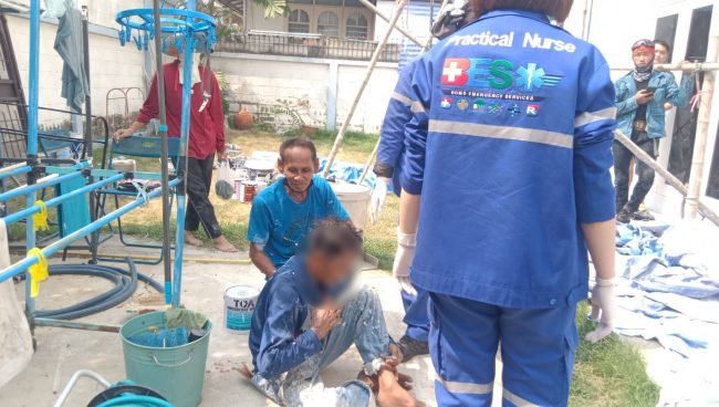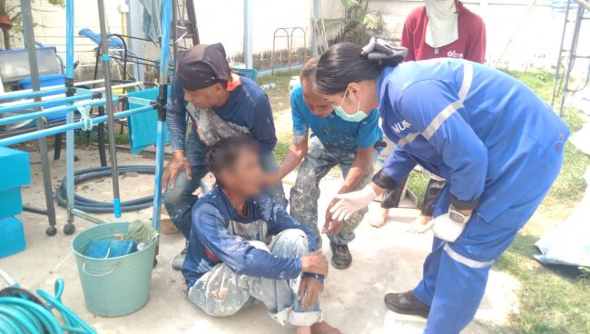 ใกล้กันพบร่างผู้บาดเจ็บทราบชื่อต่อมาคือนาย ประทีป แดงสมุด อายุ 67 ปี อาชีพรับเหมาก่อสร้าง โดยผู้รับได้รับบาดเจ็บนั้นได้ตกมาจากนั่งร้านบริเวณชั้น 2 มากระแทกพื้นทำให้ใบหน้ามีอาการปูดบวมขึ้นมา ประกอบด้วยสภาพอากาศร้อนทำงานกลางแจ้งเกิดวูบ เบื้องต้นเจ้าหน้าที่ได้ปฐมพยาบาลเบื้องต้นและนำส่งโรงพยาบาลแหลมฉบังเพื่อรักษาต่อไป