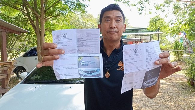 เจ้าของร้านป้ายไวนิลศรีราชาดังสุด งง ถูกใบสั่งขับรถเร็วส่งถึงบ้านขณะที่เจ้าตัวไม่เคยไปจังหวัดดังกล่าว เชื่อมิจฉาชีพสวมทะเบียนปลอม
