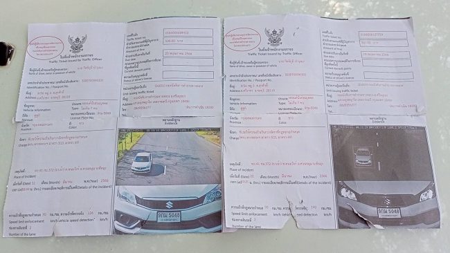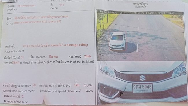เมื่อเวลา 14.00 น. วันที่25 เมษายน 2566ผู้สื่อข่าวได้รับร้องเรียนจากนาย กิตติภูมิ บำรุงผลเจ้าของร้านป้ายไวนิล พาผู้สื่อข่าวไปดูรถที่ที่บ้านตนเองที่บ้านเลขที่ 9/56 หมู่3 ตำบลสุรศักดิ์อำเภอศรีราชาจังหวัดชลบุรี หลังจากถูกใบสั่งจับความเร็วส่งถึงบ้านตนเองถึง 2 ฉบับแต่พบว่าไม่ใช่รถของตนเองแต่ป้ายทะเบียนเหมือนกัน หลังจากได้รับใบสั่งที่ออกโดยสถานีตำรวจทางหลวง กองบังคับคดีอยุธยา แขวงทุ่งพญาไทเขตราชเทวี กรุงเทพมหานคร 10400โดยสถานที่เกิดเหตุนั้นอยู่ที่ ทล.41 กม.372 ขาเข้าตำบลพนมวังก์ ตำบลควนขนุน จังหวัดพัทลุง แจ้งให้ไปชำระค่าปรับ ฐานขับรถด้วยเร็วเกินกว่าที่จำกัดไว้