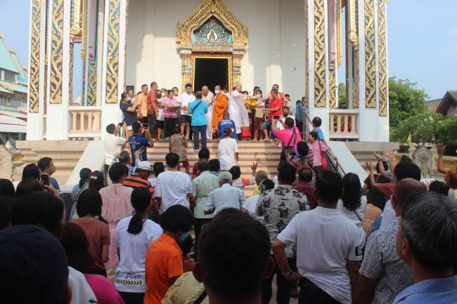 เมื่อเวลา 08.00 น. ของวันที่ 30 เมษายน 2566 ที่ผ่านมา ที่วัดศรีมหาราชา (วัดใน) อ.ศรีราชา จ.ชลบุรี นายฉัตรชัย ทิมกระจ่าง นายกเทศมนตรีเมืองศรีราชา นายณพล (สัมภาษณ์) บริบูรณ์ ผู้สมัคร ส.ส.พรรคเสรีรวมไทย เบอร์ 8 เขต 2 ชลบุรี นายขวัญเลิศ พานิชมาท อดีตสมาชิกสภาผู้แทนราษฎร จ.ชลบุรี (เขต อ.ศรีราชา-เกาะสีชัง) เบอร์ 4 นายไพบูลย์ เสริมสาตร์ (โตบางแค) ที่ปรึกษาสมาคมสื่อมวลชนศรีราชา จ.ชลบุรี