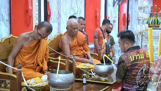 เมื่อไปถึงที่วัดมาบตาพุด บริเวณพระอุโบสถหลังใหม่ ได้มีการจัดพิธีพราหมณ์ ก่อนพิธีปลุกเสก โดยมีการนำ รถจักรยานยนต์คันใหญ่ สีแดงเมทัลลิค ทะเบียนป้ายแดง ขข-2186 ระยอง มาจอดอยู่ตรงทางขึ้นโบสถ์ ต่อมาหลวงพ่อรวย เจ้าอาวาสวัดมาบตาพุด ได้เดินทางมาถึง ได้มีการขึ้นซ้อนรถจักรยานยนต์เพื่อเป็นสิริมงคล ก่อนจะเข้าพิธีปลุกเสก ท่ามกลางความฮือฮาของลูกศิษย์ที่เข้าร่วมพิธีปลุกเสก แห่ถ่ายรูปเป็นจำนวนมาก ส่วนคอหวยก็ไม่พลาดถ่ายหมายเลขทะเบียน เพื่อนำไปเสี่ยงโชคตามระเบียบ