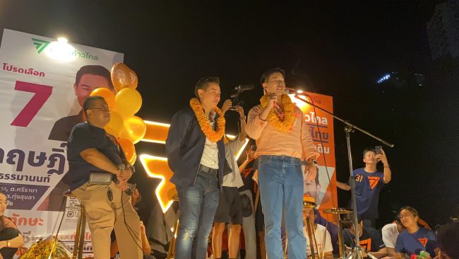 พิธา นำทีมก้าวไกล ลงพื้นอำเภอศรีราชา เปิดเวทีปราศรัย พบหนุ่มสาวฉันทนา แห่รับเนืองแน่น