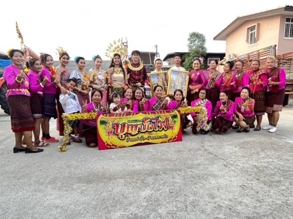 และผู้นำชุมชน ประชาชน เยาวชน นักท่องเที่ยว ร่วมงานเป็นจำนวนมาก โดยร่วมกันจัดริ้วขบวนแห่ผาแดงนางไอ่ แต่งกายด้วยชุดพื้นเมือง รำบวงสรวงพญาแถน และแห่บั้งไฟสวยงามบรรยากาศเป็นไปด้วยความสนุกสนาน