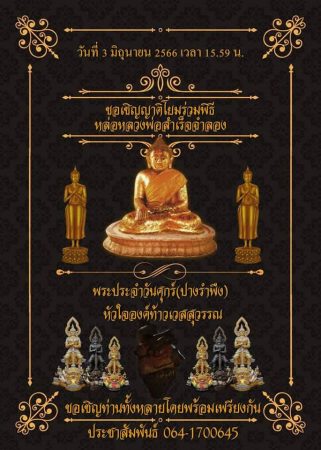 วัดเขาช่องลมขอเชิญพุทธศาสนิกชนร่วมเป็นเจ้าภาพเททองหล่อหลวงพ่อสำเร็จ พระประจำวันศุกร์(ปางรำพึง) และหัวใจท้าวเวสสุวรรณ ในวันเสาร์ที่3มิ.ย.66นี้