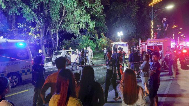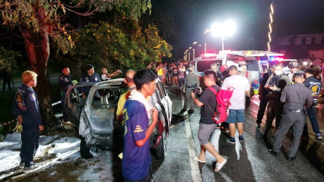 ที่เกิดเหตุมีประชาชนมุงดูเหตุการณ์จำนวนมาก พบรถยนต์ยี่ห้อ ซูซูกิ เซเลลิโอ สีแดง หมาเลขทะเบียน จฉ 5736 ชลบุรี ภายในตัวรถที่เบาะคนขับพบร่าง ผู้หญิง ยังไม่สามารถระบุชื่อได้ ใช้ผ้าคลุมนอนแน่นิ่งไม่ได้สติ ท่ามกลางเปลวเพลิงกำลังโหมลุกไหม้ตัวรถอย่างหนัก ด้านข้างที่เบาะผู้โดยสารยังมี เตาอั้งโล่ ก่อไฟแดงฉานส่งกลิ่นควันคลุ้งตั้งอยู่ โดยเจ้าหน้าที่และพลเมืองดีพยายามจะช่วยเหลือ แต่ด้วยเพลิงที่รุนแรงจึงไม่สามารถช่วยเหลือผู้ที่ติดอยู่ออกมาได้ ทำได้เพียงฉีดน้ำสกัดเปลวไฟ ที่โหมกระหน่ำ จนไฟเริ่มสงบลง ส่วนผู้ที่ติดอยู่ในซากรถนั้น ถูกไฟคอกจะร่างไหม้เกรียมเสียชีวิตคาเบาะคนขับ
