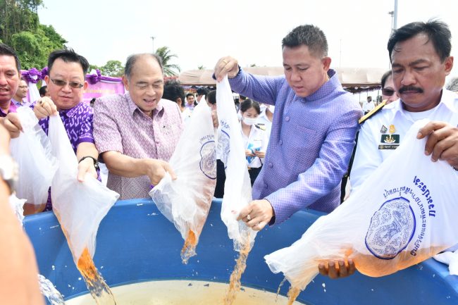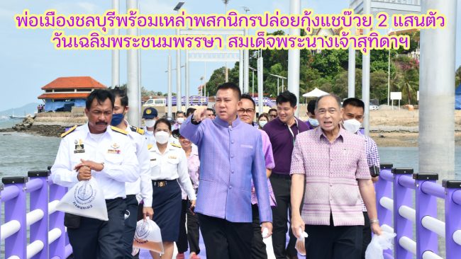 #ชลบุรี พ่อเมืองชลบุรีเปิดกิจกรรมปล่อยพันธุ์สัตว์น้ำ เนื่องในวันเฉลิมพระชนมพรรษา สมเด็จพระนางเจ้าสุทิดาฯ ถวายเป็นพระราชกุศล พร้อมทั้งเพิ่มประชากรสัตว์น้ำ