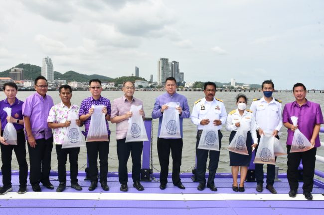 โดยมีนายณัฐพงศ์ วรรณพัฒน์ ประมงจังหวัดชลบุรี หัวหน้าส่วนราชการสังกัดกระทรวงเกษตรและสหกรณ์จังหวัดชลบุรี นายวรจักร สถาพรภิญโญ นายอำเภอศรีราชา นายฉัตรชัย ทิมกระจ่าง นายกเทศมนตรีเมืองศรีราชา และเจ้าหน้าที่ภาครัฐ เอกชน นักเรียน และประชาชนเข้าร่วมกิจกรรมเป็นจำนวนมาก