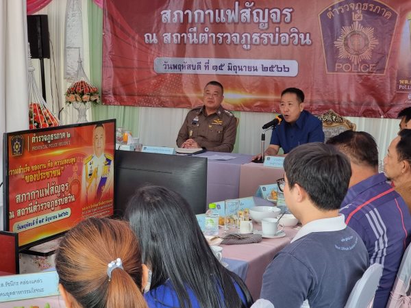 โดยมี พล.ต,ต.นันทวุฒิ สุวรรณละออง รอง ผบช.ภ.2, นายนริศ นิรามัยวงศ์ รองผู้ว่าราชการจังหวัดชลบุรี, พล.ต.ต.กัมพล ลีลาประภาภรณ์ ผบก.ภ.จว.ชลบุรี, พ.ต.อ.ไพฑูรย์ พิทักษ์ธรรม รอง ผบก.ภ.จว.ชลบุรี, พ.ต.อ.ชาตรี สุขศิริ รอง ผบก.ภ.จว.ชลบุรี, พ.ต.อ.พาติกรณ์ ศรชัย รอง ผบก.ภ.จว.ชลบุรี, พ.ต.อ.เอนก สระทองอยู่ ผกก.สภ.บ่อวิน, นายวรจักร สถาพรภิญโญ นายอำเภอศรีราชา, ข้าราชการตำรวจ สภ.บ่อวิน, กต.ตร.สภ.บ่อวิน, ภาคเอกชน และส่วนราชการในพื้นที่ สภ.บ่อวิน เข้าร่วมกิจกรรมสภากาแฟในครั้งนี้อย่างถ้วนหน้า