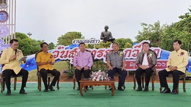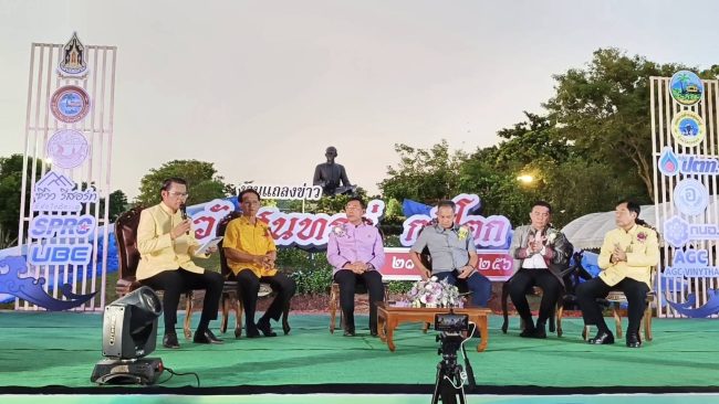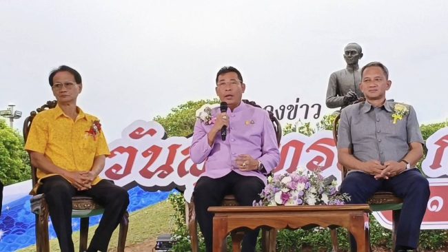 เมื่อเวลา 17.30 น.วันที่ 21 มิ.ย.ที่อนุสาวรีย์สุนทรภู่ ต.กร่ำ อ.แกลง จ.ระยอง นายไตรภพ วงศ์ไตรรัตน์ ผวจ.ระยอง นายประสานต์ พฤกษาชาติ รองนายก อบจ.ระยอง นายวรวุฒิ ด่านสมพงษ์ วัฒนธรรมจังหวัดระยอง นายคเชนทร์ แจ่มใส นายกเทศมนตรีตำบลกร่ำ และนายทิม บุญรอด ประธานสภาวัฒนธรรมจังหวัดระยอง ร่วมแถลงข่าวการจัดงาน’วันสุนทรภู่ กวีโลก’ประจำปี 2566 ซึ่งจัดขึ้นระหว่างวันที่ 25-27 มิ.ย.นี้ ที่บริเวณอนุสาวรีย์สุนทรภู่ ต.กร่ำ อ.แกลง