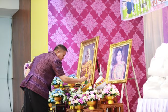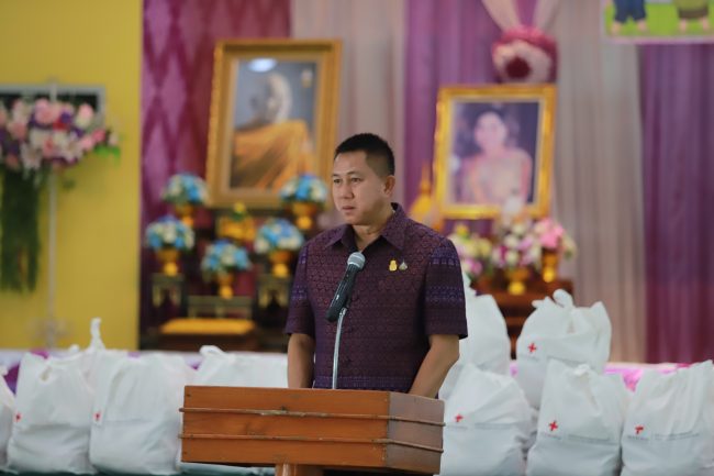 หลังจากนั้นนายธวัชชัยกล่าวว่า การมอบถุงยังชีพพร้อมเงินสดช่วยเหลือในครั้งนี้ ทางจังหวัดชลบุรีและเหล่ากาชาดจังหวัดชลบุรี เล็งเห็นความสำคัญในการบรรเทาความเดือดร้อนและเพื่อถวายเป็นพระราชกุศล สมเด็จพระนางเจ้า ฯ พระบรมราชินี และแด่สมเด็จพระอริยวงศาคตญาณ สมเด็จพระสังฆราช สกลมหาสังฆปริณายก จึงได้ดำเนินการมอบถุงยังชีพจำนวน 200 ถุง ให้แก่ผู้ด้อยโอกาส ผู้ยากไร้ ผู้สูงอายุ ผู้ป่วยติดเตียง และผู้พิการ และมอบถุงยังชีพ จำนวน 20 ถุง พร้อมเงินสดช่วยเหลือให้แก่ผู้ป่วยติดเตียง ผู้สูงอายุ และผู้พิการที่ยากไร้ ในพื้นที่จังหวัดชลบุรี
