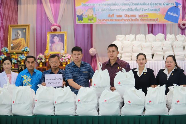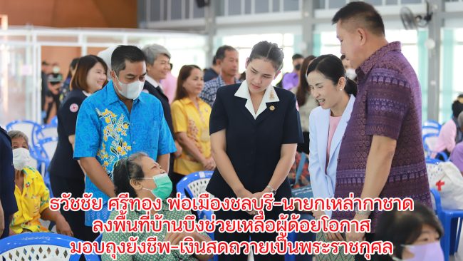 #พ่อเมืองชลบุรี พร้อมนายกเหล่ากาชาด ลงพื้นที่บำบัดทุกข์บำรุงสุขชาวอำเภอบ้านบึง มอบถุงยังชีพผู้ด้อยโอกาส ถวายเป็นพระราชกุศล พร้อมหาข้อมูลแก้ไขปัญหาระยะยาว