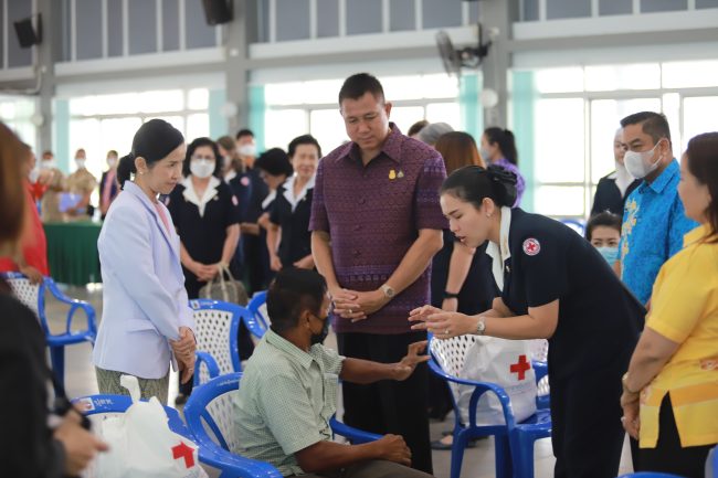 เมื่อเวลา 09.00 น.วันที่ 22 มิถุนายน ที่ศาลาประชาคมอำเภอบ้านบึง จังหวัดชลบุรี นายธวัชชัย ศรีทอง ผู้ว่าราชการจังหวัดชลบุรี เป็นประธานมอบถุงยังชีพบำบัดทุกข์ บำรุงสุข สร้างรอยยิ้มให้ประชาชน ประจำปี 2566 ตามโครงการมอบถุงยังชีพแก่ผู้ด้อยโอกาส ผู้ยากไร้ ผู้สูงอายุ และผู้พิการและโครงการเยี่ยมเยียนผู้ป่วยติดเดียง ผู้สูงอายุ และผู้พิการที่ยากไร้ในพื้นที่จังหวัดชลบุรี โดยมี น.ส.ประภัสรา ศรีทอง นายกเหล่ากาชาดจังหวัดชลบุรี นายชัยพร แพภิรมย์รัตน์ เลขานุการเหล่ากาชาดจังหวัดชลบุรี นายสมศักดิ์ จุฑาวงศ์กุล นายอำเภอบ้านบึง พร้อมหัวหน้าส่วนราชการ คณะกรรมการเหล่ากาชาดจังหวัดชลบุรี สมาชิกเหล่ากาชาดจังหวัดชลบุรี ผู้บริหารองค์กรปกครองส่วนท้องถิ่น กำนัน ผู้ใหญ่บ้านในพื้นที่จังหวัดชลบุรีเข้าร่วมกิจกรรมในครั้งนี้อีกด้วย