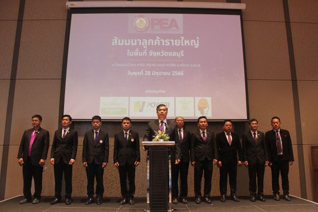 PEA จัดงานสัมมนาลูกค้ารายใหญ่ ในพื้นที่จังหวัดชลบุรี ประจำปี 2566 เพื่อประชาสัมพันธ์ข้อมูลข่าวสารด้านพลังงานไฟฟ้า และงาน บริการ รวมทั้งเทคโนโลยีของการไฟฟ้าส่วนภูมิภาค ในยุคดิจิทัล ให้แก่ผู้ประกอบการภาคธุรกิจอุตสาหกรรม