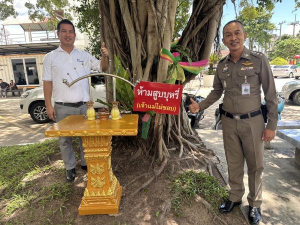 โรงพักสภ.บ่อวินฉุดไอเดียตั้งป้ายห้ามสูบบุหรี่ในพื้นที่สาธารณะ