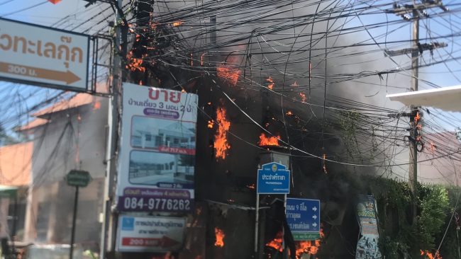 ระทึก! ไฟไหม้สายสื่อสาร กลางเมืองศรีราชา หวิดไหม้บ้านเรือนประชาชน คาดเกิดจากหม้อแปลงระเบิดเกิดประกายไฟ