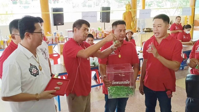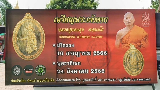 เมื่อวันที่ 16 กรกฏาคม 2566 ที่วัดหนองฆ้อ ต.หนองบัว อ.บ้านค่าย จ.ระยอง ประชาชนนับ 1,000 คนแห่เข้าคิวรับใบจองเหรียญพระเจ้าตากสินมหาราช รุ่น 1 ของหลวงปู่ทองสุข เจ้าอาวาสวัดหนองฆ้อ เกจิชื่อดัง จ.ระยอง มีนายนิพนธ์ เสียงจันทร์ (นิพนธ์ระยองรีไซเคิล) ประธานการจัดสร้างวัตถุมงคลวัดหนองฆ้อ นายพิทักษ์ ศิริวงษ์ นายกสมาคมพิทักษ์ประชาราษฎร์ ร่วมจัดสร้าง