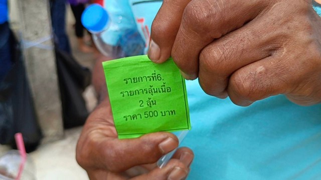โดยมีประชาชนเดินทางมาจองคิวตั้งแต่เช้ามืด เพื่อรอจับสลากที่ทางผู้จัดสร้างได้ใส่ลงไปกล่องเสี่ยงดวง ซึ่งมีทั้งเนื้อเงินหน้าทองคำ เนื้อเงิน เนื้อนวะ และ เนื้อทองแดง โดยให้ทุกคนจับสลากคนละ 1 ใบ เพื่อลุ้นเนื้อเหรียญต่างๆ หลังการจับพบว่ามีผู้โชคดีได้ เหรียญสมเด็จพระเจ้าตากสิน ในเนื้อต่างๆ โดยมีเซียนพระจำนวนมาก มายืนรอขอซื้อใบจอง โดยให้ราคาตามเนื้อเหรียญลดหลั่นกันไป โดยส่วนใหญ่จะเก็บไว้เพื่อเช่าบูชาเอง แต่ก็มีบางส่วนที่ขายใบจองให้กับเซียนพระ