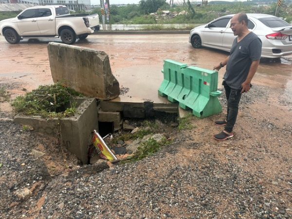 เมื่อเวลา 10.50 น. ของวันที่23 กรกฎาคม 2566 บริเวณหน้าร้านประดับยนต์ FCS ตั้งอยู่ที่หมู่ 3 ต. บ่อวิน อ. ศรีราชา จ. ชลบุรี กล้องวงจรปิดที่ร้าน สามารถจับภาพเหตุการณ์ ชาย1ราย ขับรถจักรยานยนต์ฝ่าสายฝนที่ตกหนัก บริเวณถนนเส้น รย 3013 บ่อวิน-ปลวกแดง จนเกิดอุบัติเหตุตกลงไปในท่อระบายน้ำริมถนนที่ไม่มีฝาปิด จนรถจักรยานยนต์ ยี่ห้อฮอนด้า สกู๊ปปี้ สีแดงขาว ตกลงไปในท่อ จนรถพังเสียหาย ชายผู้ขับขี่ได้รับบาดเจ็บเล็กน้อย