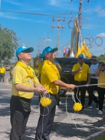 ทั้งนี้ ผู้ว่าราชการจังหวัดนครนายกได้รับมอบอุปกรณ์การเรียนการสอนจากเจ้าอาวาสวัดธรรมปัญญาและมอบให้แก่นักเรียนโรงเรียนวัดธรรมปัญญา และทำความสะอาดพระอุโบสถ บริเวณหน้าวัดธรรมปัญญา ในการนี้เวลา 10.00 น. ผู้ว่าราชการจังหวัด ได้เปิดซุ้มเฉลิมพระเกียรติพระบาทสมเด็จพระวชิรเกล้าเจ้าอยู่หัว ณ ถนนรังสิต – นครนายก บริเวณแยกสะพานมัฆวานรังสรรค์ เปิดผ้าแพร ป้ายถนนจงรักภักดี ปล่อยพันธุ์ปลา จำนวน 300,000 ตัว และปลูกต้นรวงผึ้ง จำนวน 10 ต้น 27 กรกฎาคม 2566