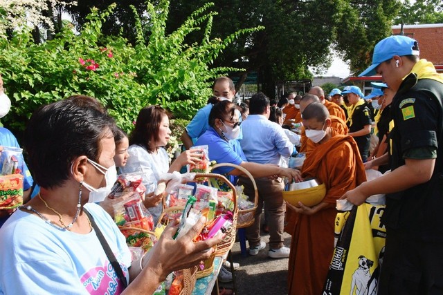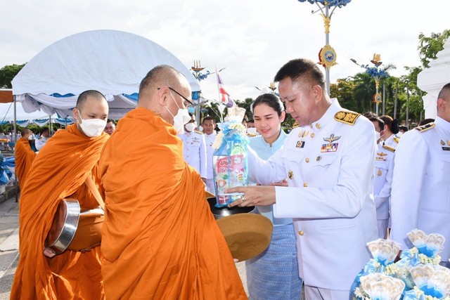 จากนั้น ผู้ว่าราชการจังหวัดชลบุรี พร้อมผู้ร่วมพิธี ได้ร่วมพิธีทำบุญตักบาตร ที่บริเวณหอพระพุทธสิหิงค์ฯ อำเภอเมืองชลบุรี จังหวัดชลบุรี พระสงฆ์และสามเณร จำนวน 92 รูป รับบิณฑบาต