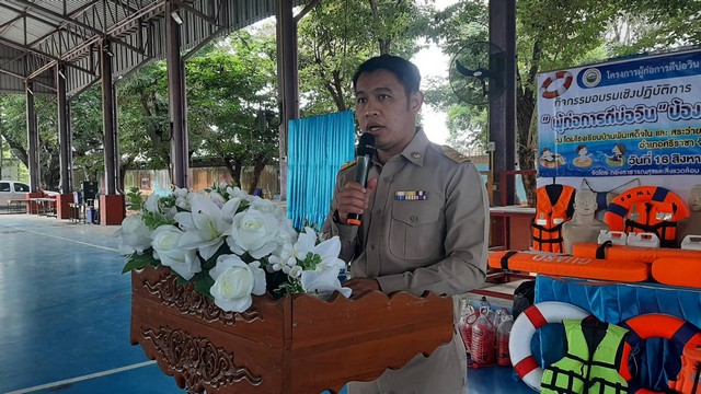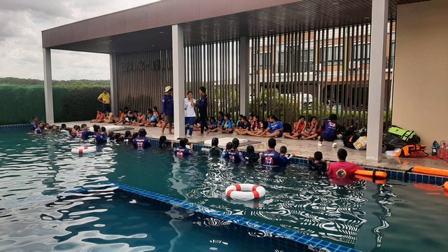 อบต.บ่อวินจัดการ ฝึกทักษะเอาตัวรอด “ตะโกนโยน ยื่น” ช่วยน้องๆ ไม่จมน้ำ ลดการเสียชีวิต