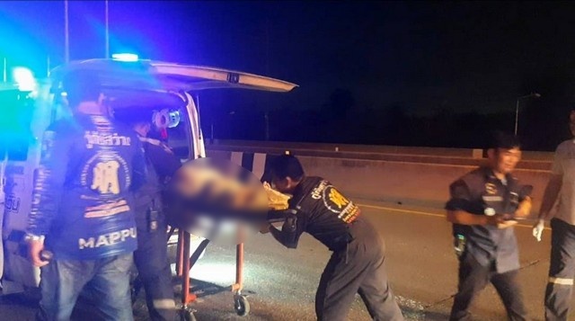 เมื่อเวลา 24.20 น. วันที่ 17สิงหาคม ศูนย์วิทยุ191สถานีตำรวจภูธรบ่อวิน รับแจ้งแจ้งมีอุบัติเหตุรถยนต์เก๋งชนท้ายรถยนต์กระบะ มีผู้ได้รับบาดเจ็บหลายราย บนทางยกระดับมาบเอียง-อมตะขาเข้าสัตหีบ หลังรับแจ้ง ร.ต.อ.สมพร ปานจันทร์ รองสารวัตรสอบสวน สภ.บ่อวิน จึงประสานเจ้าหน้าที่กู้ภัยศีลธรรมสมาคมบ้านบึง จุดบ่อวินพร้อมด้วยอุปกรณ์เครื่องตัดถ่าง รุดไปที่เกิดเหตุ พบรถยนต์เก๋ง ยี่ห้อ โตโยต้า โคโรน่า สีดำ ทะเบียน 7กฎ3110 กรุงเทพมหานคร เสยท้ายรถยนต์กระบะเลนซ้ายสุดอยู่ในสภาพด้านหน้าพังยับเยิน ภายในรถที่เบาะคนขับพบผู้ได้รับบาดเจ็บเป็นชายชาวจีน อายุประมาณ 40-50 ปี บาดเจ็บจุกเสียดหน้าอก ปากแตก