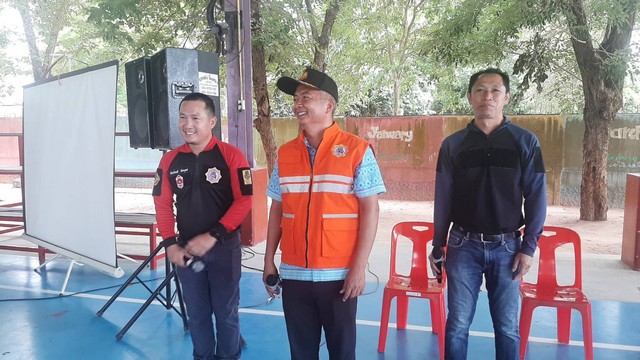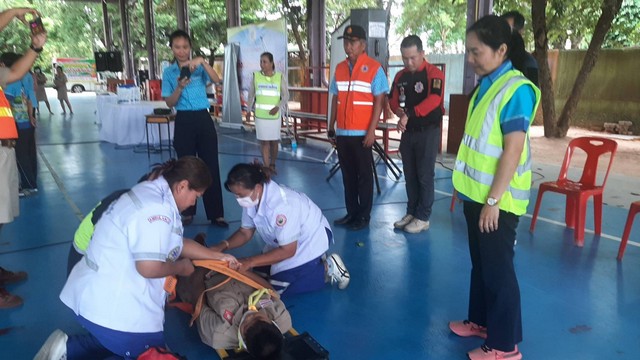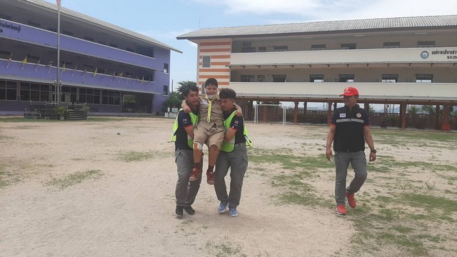 เจ้าหน้าที่กู้ชีพจากองค์การบริหารส่วนตำบลบ่อวิน เข้าร่วมการซ้อมแผนโดยการซ้อมแผนในครั้งนี้มีการจำลองเหตุการณ์ไฟไหมอาคารเรียนชั้น 3 มีนักเรียนจำนวน 2 คนได้รับบาดเจ็บเจ้าหน้าที่ค้นหาและนำผู้ได้บาดเจ็บลงมานำส่งโรงพยาบาล มีการซ้อมการดับเพลิงที่มีกลุ่มเพลิงขนาดใหญ่ และสอนการใช้ถังดับเพลิง สอนการปฐมพยาบาลเบื้องต้นให้กับนักเรียนอีกด้วย