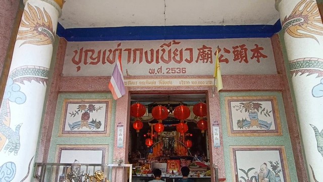 สำหรับ ศาลเจ้าปุญเท่ากงเบี้ยวแห่งนี้ มีอายุมากกว่า 100 ปี ซึ่งคนไทยเชื้อสายจีนเคารพและศรัทธากราบไหว้พร้อมใจกันจัดงานประจำปีประเพณีทิ้งกระจาดทุกปี เพื่ออุทิศส่วนกุศลให้ผู้ที่เสียชีวิตไปแล้ว ให้ได้รับบุญกุศล ภายในงาน จึงมีการ มอบข้าวสาร อาหารแห้งให้กับผู้ยากไร้ เพื่อให้นำไปใช้ในการดำรงชีวิต นอกจากนี้ยังมีรางวัลพิเศษเป็นพัดลมและจักรยานมอบให้กับผู้โชคดี
