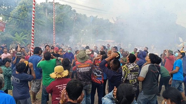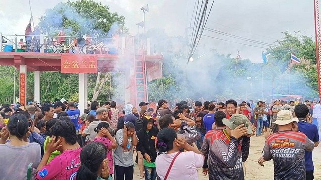 ระยอง- คึกคัก! ประชาชนจากทั่วสารทิศ แห่รับติ้วลูกหมากลุ้นรางวัล ในงานทิ้งกระจาดศาลเจ้าบ้านแลง ระยอง นักเสี่ยงโชคไม่พลาดนำเลขหางประทัดลุ้นหวย