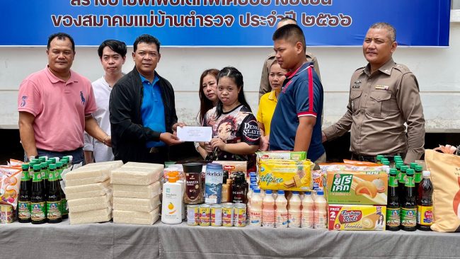 ร่วมกับ ชมรมแม่บ้าน ภ.2 โดยคุณเกตุแก้ว อิทธิสารรณชัย ประธานชมรมแม่บ้าน ภ.2 และคณะแม่บ้าน ภ.2 ร่วมมอบเงินช่วยเหลือและสิ่งของอุปโภคบริโภคแก่เด็กพิเศษที่เป็นบุตรของข้าราชการตำรวจ สภ.แหลมฉบัง จำนวน 2 ราย ตามโครงการ “ครอบครัวตำรวจ เราไม่ทิ้งกัน” สร้างอาชีพเพื่อเด็กพิเศษอย่างยั่งยืน ของสมาคมแม่บ้านตำรวจ ประจำปี 2566 ณ บริเวณหน้าบ้านพักข้าราชการตำรวจ สภ.แหลมฉบัง