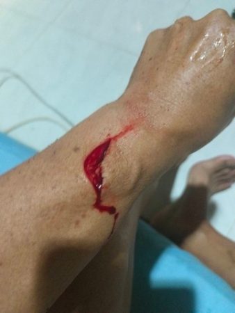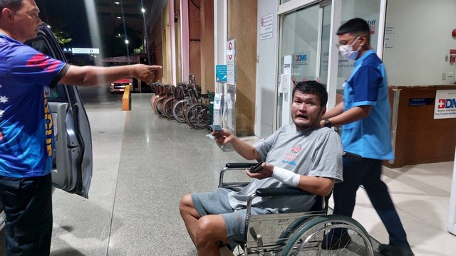 ทั้งนี้เมื่อเดินทางไปถึงโรงพยาบาลเอกชนดังกล่าวได้แจ้งสิทธิ์รักษาตามประกันอุบัติเหตุ ซึ่งทางโรงพยาบาลทำการเช็คสิทธิ์กว่า 20 นาที และปล่อยให้รอมิได้ตรวจสอบบาดแผล อาการบาดเจ็บแต่อย่างใด ก่อนมีเจ้าหน้าที่ออกมาแจ้งว่าไม่มีสิทธิ์ในการรักษาของประกัน แต่ด้วยอาการที่เสียเลือดมาของผู้บาดเจ็บ จนใบหน้าซีดเซียว อาการไม่สู้ดี หวั่นจะเกิดอาการช็อค เพราะผู้บาดเจ็บนั้นมีโรคประจำตัวด้วย ทางเพื่อนที่ตามมาด้วยจึงต้องของเคลื่อนย้ายผู้บาดเจ็บส่งโรงพยาบาลของรัฐ เพื่อทำการรักษาเร่งด่วน หลังต้องเสียเวลารอเช็คสิทธิจากโรงพยาบาลเอกชนชื่อดัง เพื่อความปลอดภัยของผู้บาดเจ็บ เมื่อถึงโรงพยาบาลรัฐเจ้าหน้าที่ได้ทำการเย็บที่คิ้วขวา 8 เข็ม และแขนซ้าย 10 เข็ม จนอาการปลอดภัย